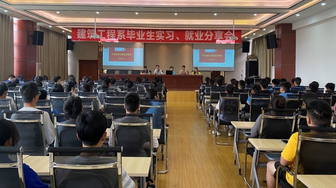 首先,由建筑工程系周剑书记致欢迎词,同时对即将实习的同学们提出了三点希望:第一是摆正心态,第二是脚踏实地,第三是身心健康。招生就业办袁田主任鼓励同学们,在学习观、就业观、自身能力三方面加强提升。随后,两位优秀毕业生分别结合自身的实习、就业经历,从工作内容、工作计划、过程感想、经验总结、温馨提示等方面讲述了他们在工作岗位上的心路历程,博得同学们的阵阵掌声。