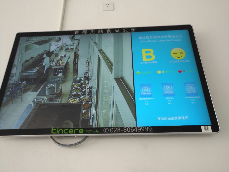 近日,温江区食药局在全区学校食堂等大型餐饮机构中建设“明厨亮灶”工程,在管理规范、硬件合格的学校中选取部分单位作为试点,我校入选首批试点单位。目前工程安装调试工作已完成,通过监控器将食堂厨房后台有关加工操作等工艺流程、连接在就餐区电子显示屏上实时显示,使全校师生对后厨加工及管理情况一目了然,便于接受师生实时监督,及早发现问题、解决问题,促进从业人员“诚信自律”的职业操守,为全校师生安全卫生的就餐环境。